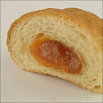 Нежный круассан из дрожжевого слоёного теста в виде рогалика с двумя надрезами, с аппетитным фруктовым джемом.