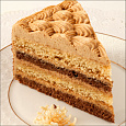 Медовые коржи и мягкий шоколадный бисквит, хорошо пропитаны сиропом, со сливочным кремом из варёного сгущённого молока.